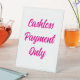 "NUR KASSTLOSE ZAHLUNG" Schild in rosa, geeignet für Tischdecken oder Tischdecken in Einzelhandelsgeschäften, Boutiquen, Handwerksständen usw.