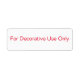 Diese Aufkleber "Nur für dekorativen Gebrauch" sind aus 2 Aufklebern für einen. Nehmen Sie ein kleines, aber effektives Etikett auf, das Sie auf den von Ihnen verkauften Gefäßen für Non-Food/Drinks platzieren können. Nicht alle Teller oder Becher sind für konsumierbare Produkte gedacht, und diese Aufkleber sind eine bequeme Möglichkeit, Ihren Kunden zu lass wissen, welche.