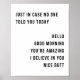 Nur für den Fall, niemand sagte Ihnen heute Hallo Guten Morgen Sie sind Phantastisch, ich glaube an Sie Nice Hintern Minimal
