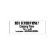 Für die Einzahlung ist nur an der Spitze. In der Mitte können Sie den Geschäftsnamen und die kursiv-ähnliche Skriptsignatur für den Karo-Endorsement hinzufügen. Unten sind Ziffern für die Kontonummer. Die erste, zweite und vierte Zeile sind fett Schriftart. Alle Texte können bearbeitet oder gelöscht werden.