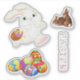 Niedlich, Sortiment von Osteraufklebern, mit Becken, zwei kleinen Bollen, Gruppe von farbigen Eiern und das Wort Ostern in einem Blumendesign. Diese Sonderaufkleber sind ideal für Osterdekorationen, Schrottbuchungen und vieles mehr!