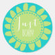 Dieser blau-grüne Blumenaufkleber ist mit dem Text Geboren in der modernen Typografie. Ideal für neue Anlässe.