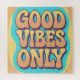 Lustiger Zitat-Text im Groovy-70er-Jahre-Stil-Typografie mit dem Text 'Nur gute Schwingungen'-Design.