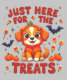 Feiern Sie Halloween mit diesem charmanten Design, das von einem bezaubernden Welpen in Kürbisform umgeben ist, der von Süßigkeiten und Halloween-Dekorationen umgeben ist. Die Phrase "Just Here for the Leckereien" ist ideal für alle, die Halloween, Hunde oder beides Lieben! Egal, ob Sie Trick oder Behandlung haben oder einfach nur die unheimliche Saison genießen, dieses niedliche und spielerische Design ist perfekt, um Ihre Liebe zu Halloween und Ihrem wütenden Freund zu zeigen.