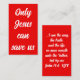 Benutzen Sie diese einzigartige Evangelium-Botschaft, die Calling Cards als eine Möglichkeit, das Eis zu brechen und den Menschen eine Gelegenheit zu geben, über Jesus Christus zu erleben. Dieses coole Typografie-Design hat ein hübsches, weißes Schriftzeichen auf einem hellroten Hintergrund, um Sie an das Blut Christi zu erinnern, das Sie rette. Auf der Rückseite befindet sich ein relevanter Schriftstellervers aus der King-James-Bibel #trust #salvation