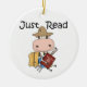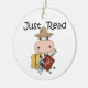 Lesen Sie einfach T - Shirt, Hoodies, Tasse, Karten, Aufkleber, Tasten, Magnete, Mousepads, Zeitschriften, Keepsakes und andere Lesekleidung und Geschenke, die das Lesen auf niedliche Weise fördern! Eine Kuh mit Strohhut und Pitchfork-Erholungen gegen ein Heu-Ballen mit einem Buch!