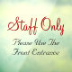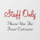 Dieses elegante Design enthält die Botschaften "Nur Mitarbeiter" und "Bitte nutzen Sie den Eingang zur Vorderseite". Es kann von einem Unternehmen verwendet werden, um Kunden und Besucher zu warnen, einen anderen Eingang zu verwenden.