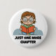 Süßer Knopf / Stift, ideal für Bücherliebhaber und Bücherwürmer. Ein süßes Kind sitzt mit gekreuzten Beinen und liest ein Buch. Darunter stehen die Worte 'Nur noch ein Kapitel' in einem fetten schwarzen Text. Dies ist eine Vorlage, die Sie so verwenden oder mit Ihrem eigenen Text ersetzen können.
