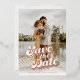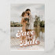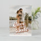 Eine Hochzeit speichern Sie das Datum mit einer benutzerdefinierten Foto und Rose Gold-Folie gedruckt Retro-Stil Typografie ist eine einzigartige und stilvolle Möglichkeit, Ihre bevorstehenden Nuptials zu Ihren Freunden und Familie bekannt geben. Das benutzerdefinierte Foto ist eine besondere Touch, die dem Design ein persönliches und sentimentales Element hinzufügt, während die Rose Goldfoliendruck eine Touch von Glamour und Raffinesse hinzufügt. Dieses Design wird sicher beeindrucken und alle begeistern für Ihren großen Tag.