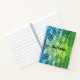 Genießen Sie die Ruhe mit einer Zeitschrift, die von den ruhigen Farben der Natur inspiriert ist. Das Design basiert auf einem zarten Flachswebermuster, dessen Mischung aus Grüntönen, Blues und Gelb die beruhigende Essenz von Erde, Himmel und Sonnenlicht einfängt, perfekt für ruhige Reflexion und kreative Reisen.