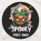 Verwandeln Sie Ihre Feier mit unheimlichen Konfetti mit einem eindringlichen Halloween-Design: "Spooky Vibes Only". Das Design umfasst einen gruseligen Kürbis, der von Fledermäusen umgeben ist, die sich gegen einen orangefarbenen Mond aufhalten und die Bühne für eine fröhliche und festliche Atmosphäre bieten.