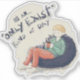 Eine Person in entspannter Haltung sitzt in einem Sessel aus Bohnensack und schnappt sich ein Getränk, während sie von der Phrase umgeben ist: "Es ist ein nur existierender Tag." Die Farbpalette ist gemütlich, mit gedämpften Grüntönen und Rottönen, die eine ruhige Atmosphäre schaffen.