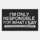 Nur verantwortlich für das, was ich sage Sarkastis Rechteckiger Aufkleber