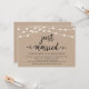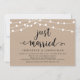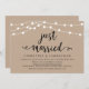 Schöne moderne Bauernstreichelampen, Schwarz-Script-Schriftart auf braunem Kraft-Hintergrund, Hochzeitsankündigung, Einladungskarte (Just Married). Dies ist ideal für Ihren Hochzeitsempfang und Ihr Party nach der Hochzeit. Fügen Sie Ihre Daten in passender Schriftart / Schrift hinzu.