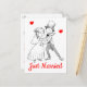 Ihre Hochzeitsinformationen werden auf der Rückseite der Postkarte in lustigen, leicht lesbaren roten und schwarzen Schriftart gedruckt.