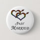 Gerade verheiratet Gay Pride Grafik Design: regenbogenfarbene, überlappende, herzförmige, männliche Geschlechtersymbole. Eine perfekte Geschenkidee für Neuvermählte.