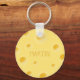 Ein Schlüsselanhänger, den man fast essen kann. Dieses spaßige Design ist realistisch heiliger Käse mit dem Namen, der in die Oberfläche gekratzt ist.
