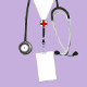 Kreative Krankenschwester mit Lavendel-Klinik, Stethoskop und Schweizer Armeemesser. Bearbeiten Sie den Text, um den Namen der Krankenschwester und das Jahr hinzuzufügen.
