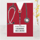 Personalisierte Vorlage für den Abschluss der Krankenpflegerin mit roten Krankenhausknöpfen und lustigen Zitaten. Text bearbeiten, um den Namen der Krankenschwester hinzuzufügen.