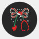 Nurse Coquette Bow Stethoscope Nursing Xmas Pjs Ch Runder Aufkleber