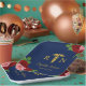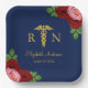 Nurse graduation with pink and red roses against a navy blue background. Gold caduceus and script typography.