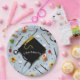 Teller für die Graduiertengruppe mit Pflegeprodukten, Graduierungsmütze und Glückwünschen für Ihren Lieblingsschüler.