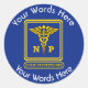 Dieser benutzerdefinierte Aufkleber ist mit einem Nurse Practitioner NP Schild dekoriert, das mit einer Auswahl von Wörtern über und unter angepasst werden kann, die es Ihnen ermöglichen, ihn mit dem Namen einer Person, eines Ortes, einer Position usw. zu personalisieren.