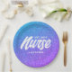 Nurse RN Abschluss Blue Lila Glitzer Monogram Pappteller