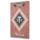 Behalt mit deinen wichtigen Notizen mit diesem Nurse RN Rose Gold Glitzer Script Personalisiert Clipboard. Es ist modern mit rosa Imitaten Glitzer Hintergrund auf beiden Seiten. Das Zentrum hat ein weißes Caduceus Symbol und "RN" auf der Mitte des grauen und rosa Diamantenrahmens. Personalisiert mit dem Namen in White Trendy Kalligraphie Skript. Ideal für eine registrierte Krankenschwester Abschluss Geschenk.