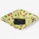 Teller für die Graduiertengruppe mit Pflegeartikeln, Blume und Graduiertenmütze.
