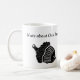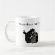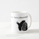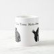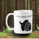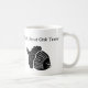 Weiße Tasse mit schwarzem Eichenholzdesign sagt auf beiden Seiten Nüsse über Eichenbäume.