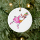 Lassen Sie dieses Tanzen Nussknacker-Huhn herauf Ihren Weihnachtsfeiertag erhellen! Ein würdevolles Huhn in den rosa Ballettstrumpfhosen tanzt zur Musik der Zuckerpflaumen-Fee, während sie einen klassischen Nussknacker auf dieser Keramikverzierung hält. Das Nussknacker-Ballett scheint nie das selbe wieder!