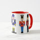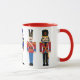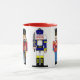 Kombinierte Kaffee-Tasse mit roter Ordnung und fünf entzückenden Nussknackersoldaten.
