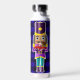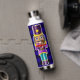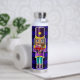 Nutcracker mit kleinen roten LKWs Wasserflasche. Mit dem originalen "Little Red Truck" Kunstwerk von Rick Ellinger. Drei Nussknacker mit blauem/schwarzem Buffalo Karo Hintergrund.