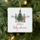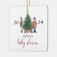 Nutcracker Baby Shower Ornament. Dieses niedliche und einzigartige Baby-Duschdekor im Urlaubsdomizil mit handgemalten Wasserfarbe Muskatnussknacksoldaten rund um einen schönen Baum und Text zum Hinzufügen Ihres Familiennamen und Jahres. Die Rückseite weist ein passendes Muster auf. Finden Sie passende Artikel in der WeihnachtsnachtsNutcracker Kollektion.