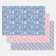 Dieses Nutcracker Weihnachtsverpackungspapier weist 3 verschiedene, skurrile Muster in einem rosa, gelben und blauen Farbthema auf. Blatt 1: ein Nusscracker- und tanzendes Ballerina-Muster; Blatt 2: Bonbons und Schneeflocken; Blatt 3: Candycane gestreift Muster in Rosa, Gelb und Blau. Ein einzigartiges und bezauberndes Geschenk für den Urlaub!