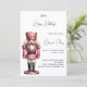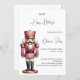 Für ein Weihnachtsfest mit Familie und Freunden. Weißer Hintergrund und ein Nussknacker Soldat als Dekor. Personalisieren und fügen Sie die Details hinzu.