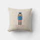 Ein Weihnachtskissen mit einer Abbildung eines Nutcrackers und einigen Sternen auf hellbraunem Hintergrund. Ideal für Ihre Weihnachtsdekoration.