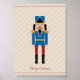 Ein Weihnachtsposter mit einer Darstellung eines Nutcrackers auf einem gestreiften braunen Hintergrund. Sie können Text- und Punktlinien löschen, indem Sie Leerzeichen verlasst, wenn Sie es vorziehen! Eine perfekte Wandkunst für Weihnachten!