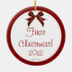 Schöne Nutcracker Personalisiert Erste Weihnachtsfeier doppelseitige Keramik Ornament! Dieses schöne Ornament ist wunderbar für ein erstes Weihnachtsfest für Paare oder in einer neuen Zuhause! Es zeigt eine digitale Kunst der Haustür-Art eines Urlaubs dekoriert Zuhause. Die Tür hat zwei stehende Nussknacker-Dekorationen auf beiden Seiten, einen Sternenkranz mit goldenen Glocken und Bögen und farbenfrohe, leuchtende Urlaubsleuchten. Die Oberseite der Tür hat einen roten Schleifenbogen, der für Sie bereit ist, mit Ihrem Familiennamen in weißer Schrift zu personalisieren! Fügen Sie einfach Ihren Namen zum Vorlagenbereich hinzu, der auf der rechten Seite dieser Seite bereitgestellt wird. Um TEXTBEREICHE zu EDIT: Textgröße, Farbe oder Stil einfach auf den Button "Anpassen" klicken und diese Optionen werden Ihnen ebenfalls zur Verfügung gestellt! Dies ist ein wunderbares Geschenk für Familie und Freunde! Für weitere Feiertage Grußkarten und Ornamente besuchen Sie bitte unseren Shop!