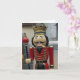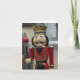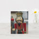 Diese farbenfrohe Weihnachtskarte ist mit einem Nutcracker-Wachmann mit einer kräftigen Goldkrone ausgestattet, die vor einer Grotte stehend ist. Der Text ist bearbeitbar, wenn Sie ihn personalisieren möchten.