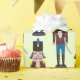 Farbenfrohe, moderne und lustige Muster-Design eines Mussoldaten, der ein Muskelmagazin in Blau und Krimson trägt, mit einem Schwert auf seinem Gürtel. Heller Kalkgrün Kunst und Design von Mira