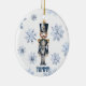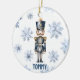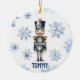 Mit diesem personalisierten Nussknacker Weihnachtsschmuck können Sie Ihren Baum mit klassischem Urlaubscharakter verzaubern! Dieses Keramik-Ornament mit einem Marinesoldaten und einem Goldfußballsoldaten, umgeben von frostigen blauen Schneeflocken und dem darunter gedruckten Namen Ihres Kindes, eignet sich hervorragend, um die Weihnachtszeit oder die Ballettaufführung zu feiern. Ein wunderbarer Sake für Kinder, Enkel oder jeden Fan des Nutcracker Balletts. Dieses maßgeschneiderte Dekor macht auch ein charmantes Geschenkschild oder kleine Geschenk für zeitlose Urlaubsmagie.