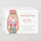 Eine niedliche Urlaubseinladung mit einem Nutcracker-Cookie in Rosa und Blau.