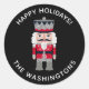 Ein Imitat Glitzer Nutcracker Urlaubsaufkleber. Koordiniert mit der Nutcracker Weihnachtskollektion. Personalisieren Sie es mit Ihrem Familiennamen.