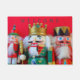 Drei fröhliche Nussknacker auf rotem Hintergrund