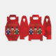 Weihnachts Nutcracker Trio - Drei Nutcracker, stehend nebeneinander auf einem roten Weihnachtsbummmuster. Der erste Nusscracker ist in Blau und Weiß mit Goldverzierungen gekleidet. Der Muskatnussknacker in der Mitte ist in Rot und Gold mit Goldverzierungen gekleidet. Der dritte Nussknacker ist in Grün und Weiß mit silbernen Schmuckstücken gekleidet. Die Nussknacker sind auf der Vorder- und Rückseite der Box zusammen mit einem goldenen Skript, das lautet: Frohe Weihnachten. Jeder dieser Nussknacker ist separat auf verschiedenen Zazzle Geschenken und Produkten erhältlich. Die Koordination der Zazzle-Geschenke und Party-Vorräte ist verfügbar.