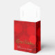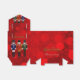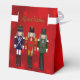 Weihnachts Nutcracker Trio-GASTGESCHENK BOX, Zelt-Drei Nutcracker stehend nebeneinander auf einem roten Weihnachtsbüchsmuster. Der erste Nusscracker ist in Blau und Weiß mit Goldverzierungen gekleidet. Der Muskatnussknacker in der Mitte ist in Rot und Gold mit Goldverzierungen gekleidet. Der dritte Nussknacker ist in Grün und Weiß mit silbernen Schmuckstücken gekleidet. Die Nussknacker sind auf der Vorder- und Rückseite der Box zusammen mit einem goldenen Drehbuch-Bild, das lautet: Frohe Weihnachten. Beide Goldtexte können so verlassen oder entfernt werden, wie sie sind, wenn Sie sie nicht gewollt haben. Für eine personalisierte Notiz oder Unterschrift ist unten ein Textbereich vorhanden. Bearbeiten Sie den weißen Text, um alles zu sagen, was Ihnen gefällt. Löscht den Text, wenn er nicht gewollt ist. Jeder dieser Nussknacker ist separat auf verschiedenen Zazzle Geschenken und Produkten erhältlich. Die Koordination der Zazzle-Geschenke und Party-Vorräte ist verfügbar.