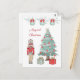 Die Weihnachtspostkarte enthält eine Aquarellbilder von Nutcracker, Weihnachtsbaum, Baubles und Geschenken. Auf der Rückseite - Weihnachtsernährungsmittel und Rockpferd