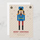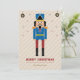 Eine Weihnachtskarte in Rot, Braun und Grün mit einer Abbildung eines Nutcrackers, einer Baule und einigen Sternen auf einem gestreiften braunen Hintergrund. Sie können es auch für Weihnachten für Ihre Familie oder ein Unternehmen nutzen, sogar für ein Neujahr!